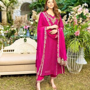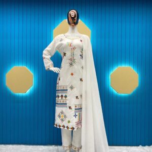 Beautiful Embroidery And Sequence With Stone Hand Work Long Kurti – Pant With Dupatta