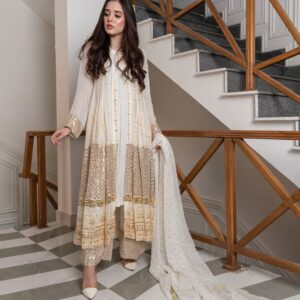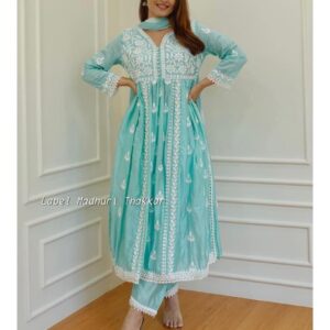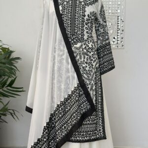 Pakistani Collection Beautiful Embroidery And Real Mirror Hand Work Long Kurti – Plazzo With Dupatta