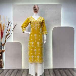 Rayon Top With Cotton Thread Embroidery Work Kurti