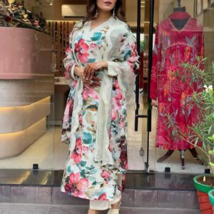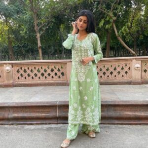 Pure Chanderi Kurti pant With Organza Dupatta
