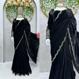 Ready to Wear Saree Velvet with Thread & Sequence work Blouse.