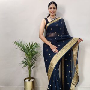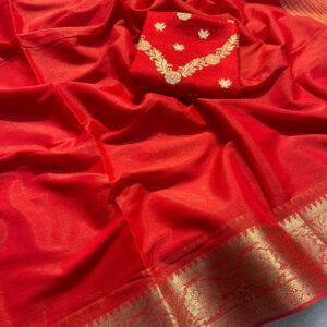 Shimmer Viscose Chiffon Border Saree With Banarasi Silk Blouse