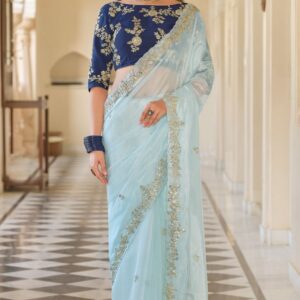 Designer Saree on Heavy Jimmy Chu silk Fabric With Fancy Lace