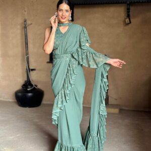 Designer Saree With Bandhani Print Ready to Wear Saree