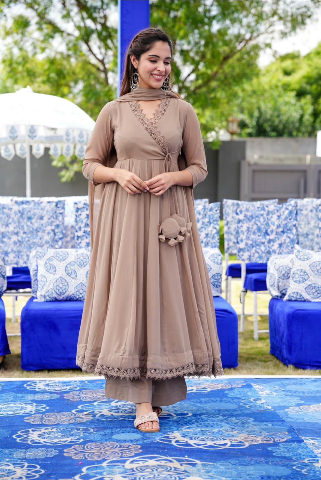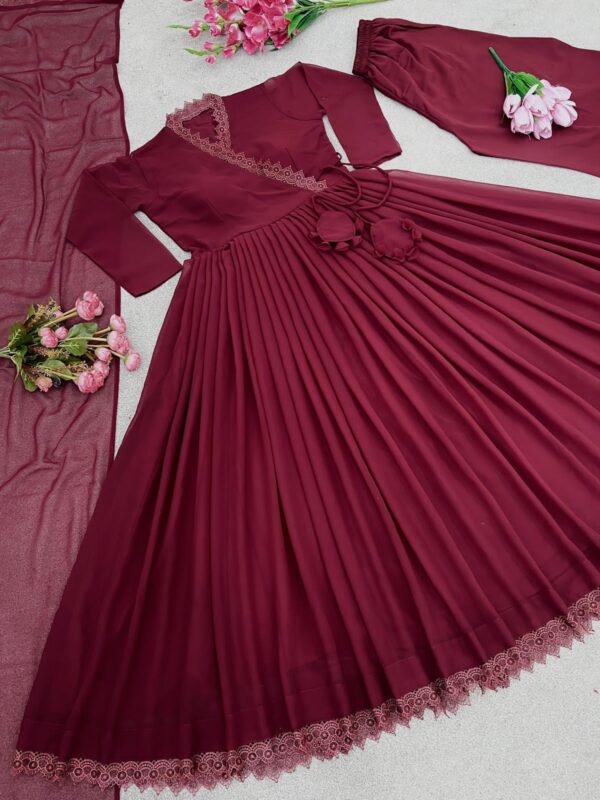 *Presenting New Anarkali Faux Georgette Gown With Fully Flair and Full Stitched With Dupatta And Bottom Ready To Wear Collection *