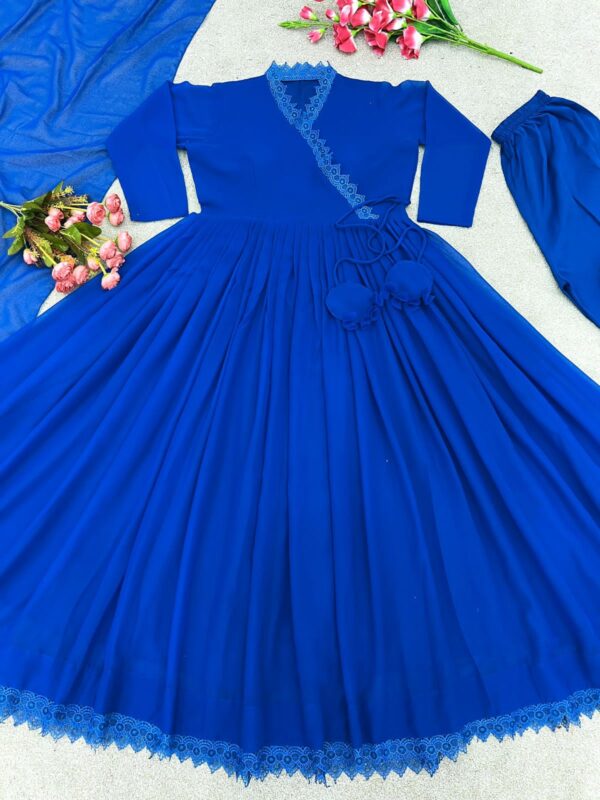 👚Top Fabric: Heavy Faux Georgette With Full Sleeve And Fancy Latkan Dori And GPO Lace Border