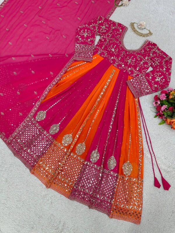 Fabric : Faux Georgette Work. : Embroidery 9+3 mm Sequence with 💎diamond Size : M(38), L(40),XL(42) Length : 55-57″ Inner. : micro