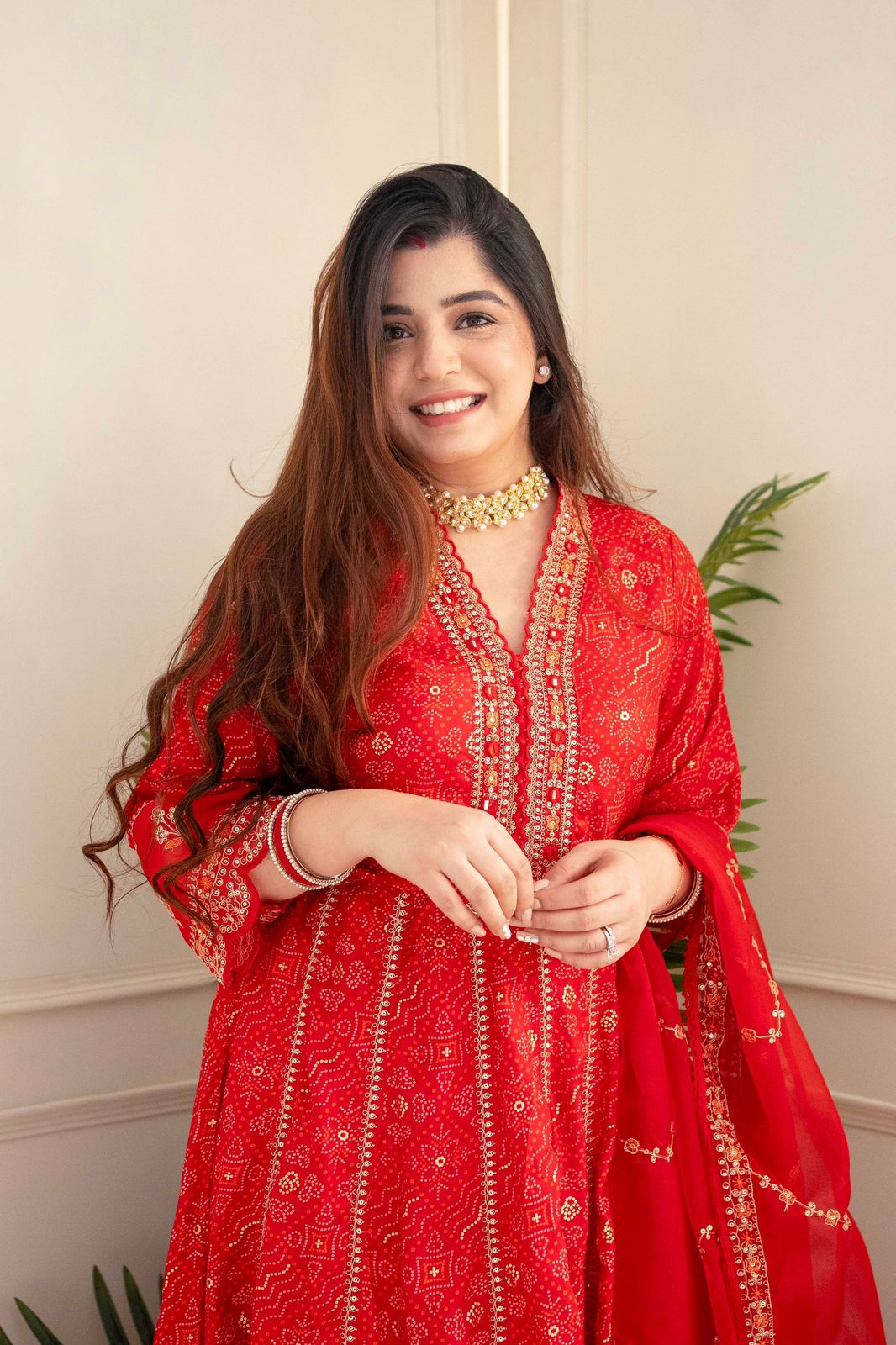 Featuring beautiful Heavy Suit Set which is beautifully decorated with hand embroidery, Zari weaving and prints. It is paired with matching pants and lace dupatta.