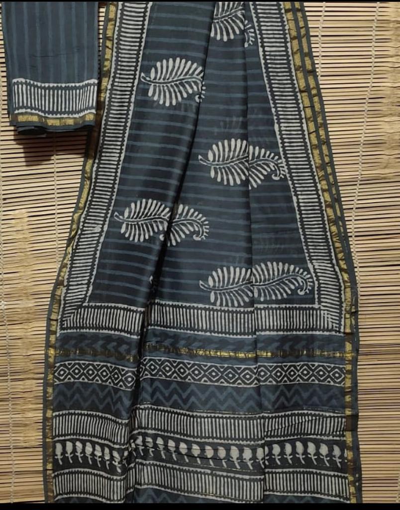 Fabric: Chanderi Silk with Gold Border Patti Digital Printed Saree