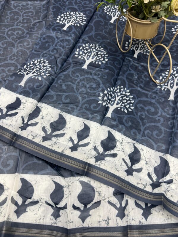 Fabric: Chanderi Silk with Gold Border Patti Digital Printed Saree