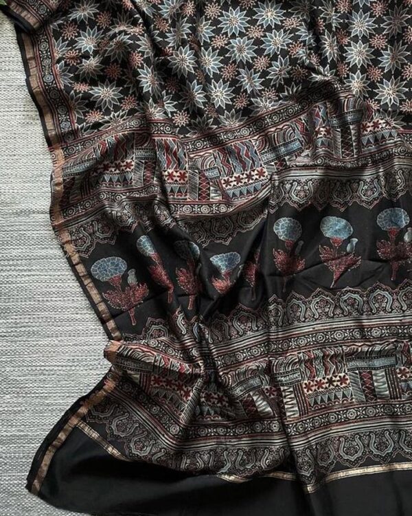 Fabric: Chanderi Silk with Gold Border Patti Digital Printed Saree