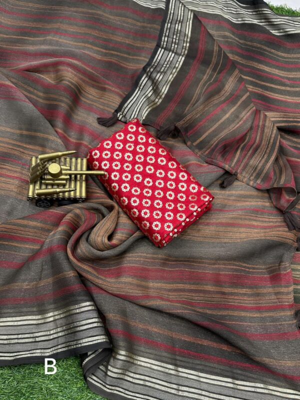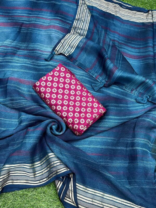 PATTERN -Printed saree with thread jacquard border with tussles in pallu& sequin work blouse.