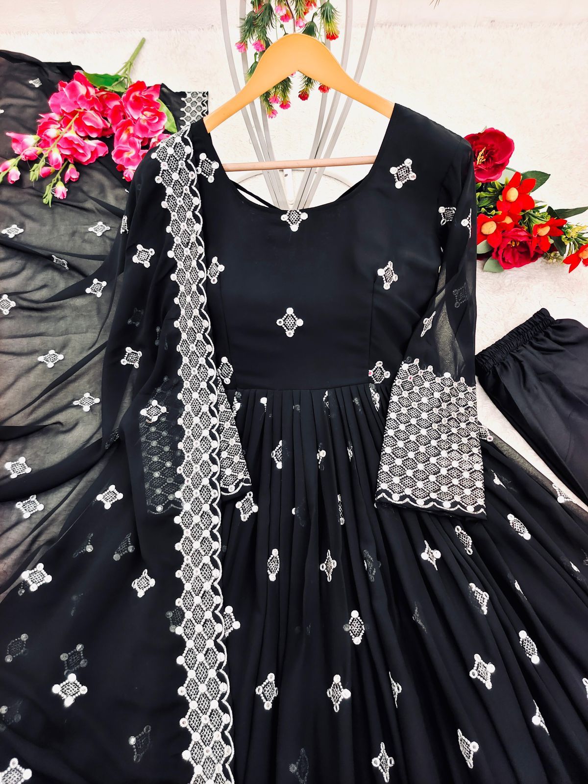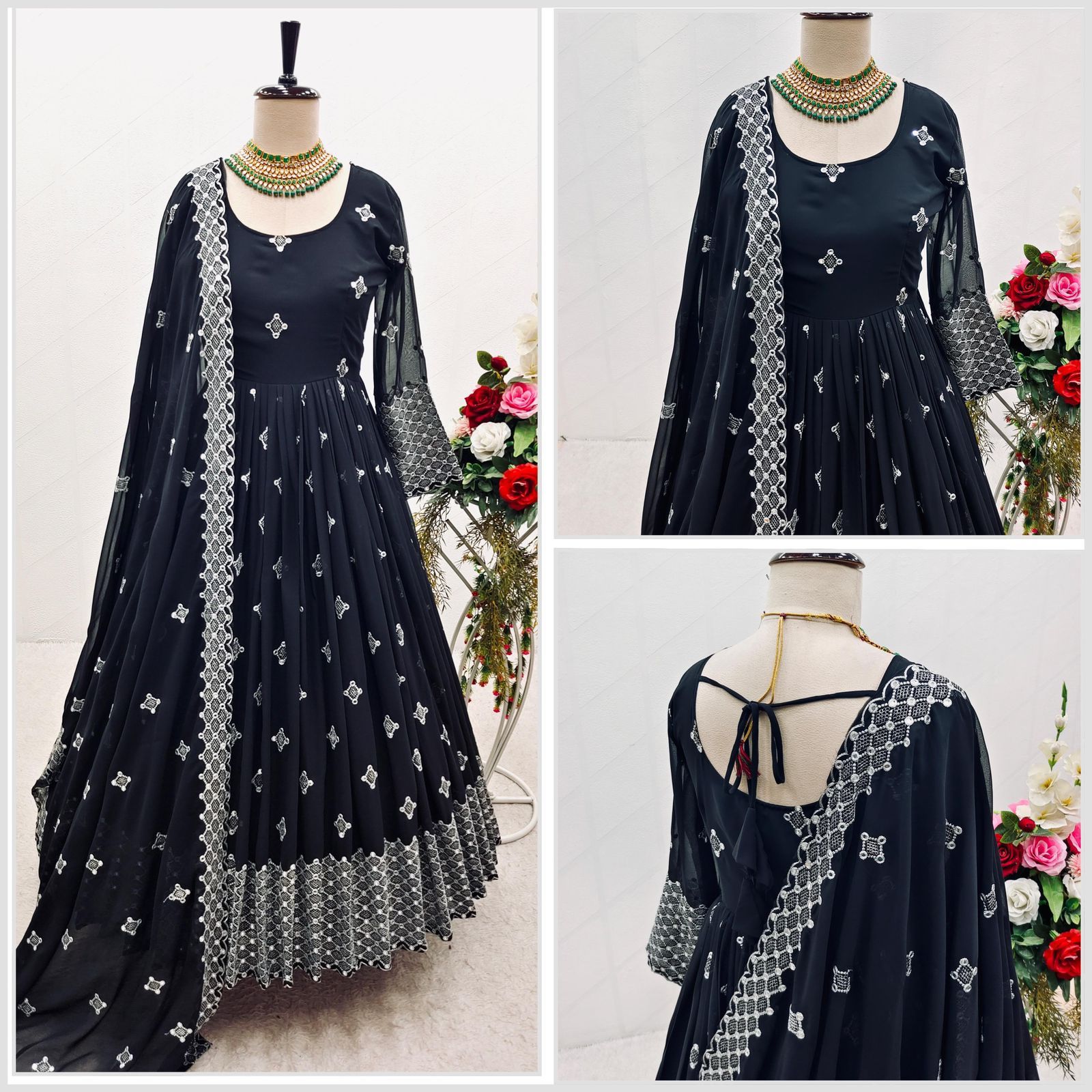๐Ÿ‘‰๐Ÿ‘—Gown Fabric : Heavy Faux Georgette With Heavy 9mm sequence Embroidery Work With Full-Sleeve With (Attached Paired With Thread)