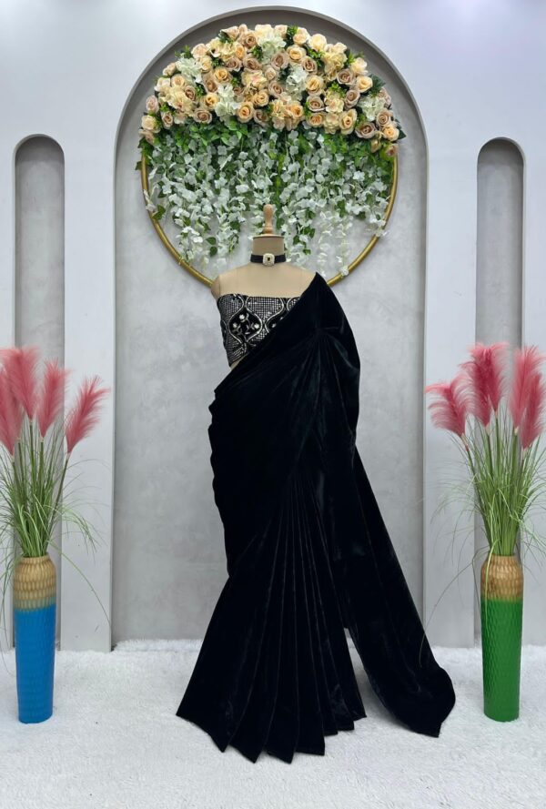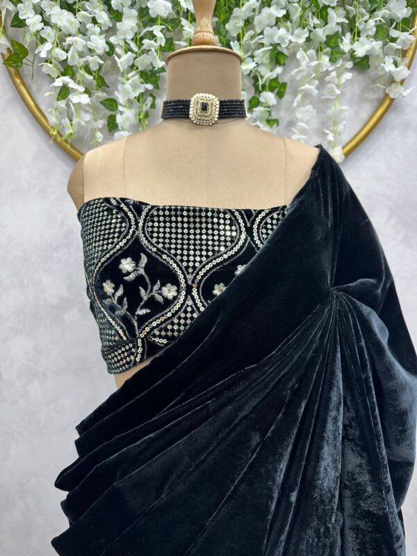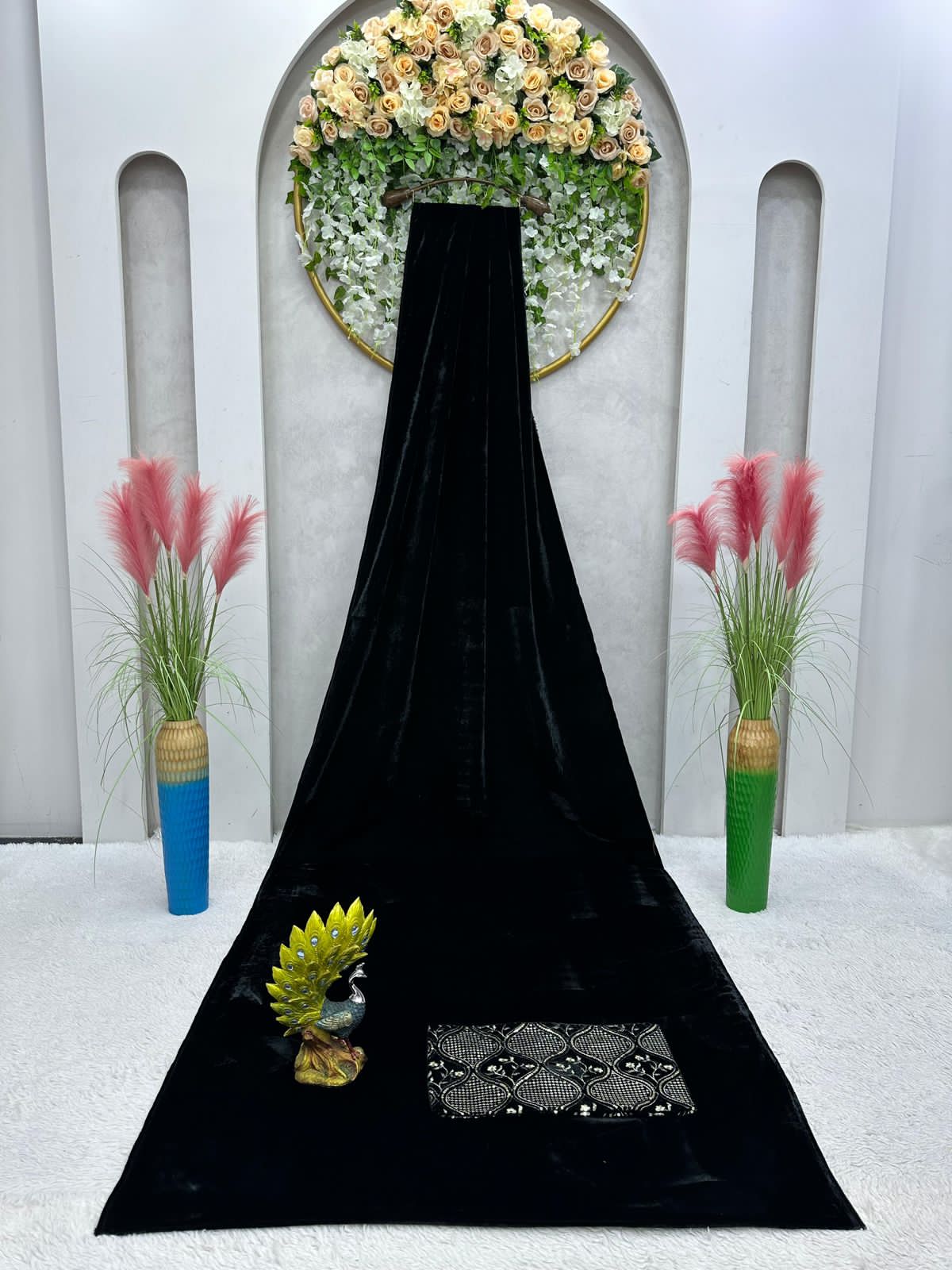 Beautiful Designer Saree on 9000 Velvet Fabric and Blouse on also 9000 Velvet Fabric with Sequence work.