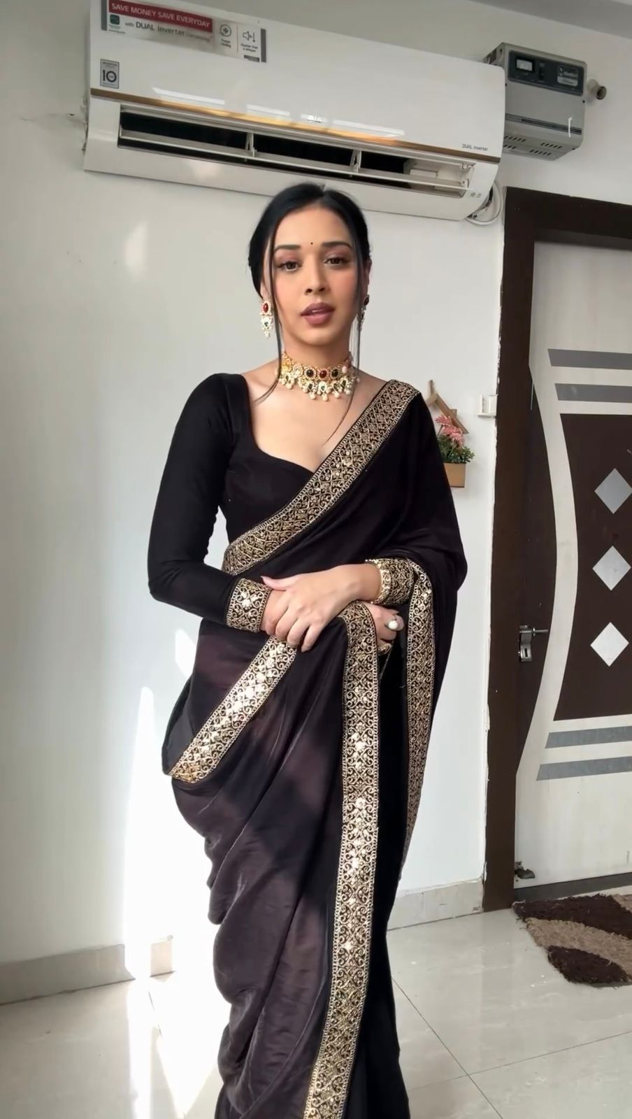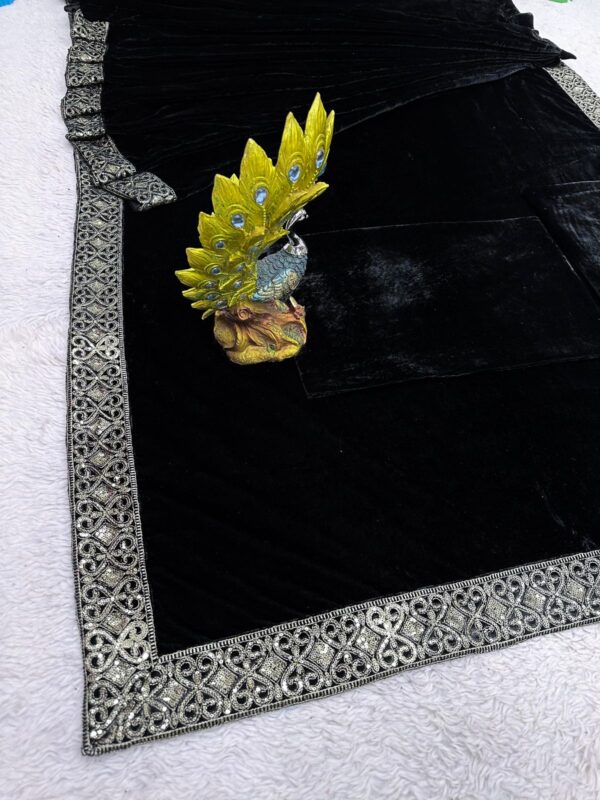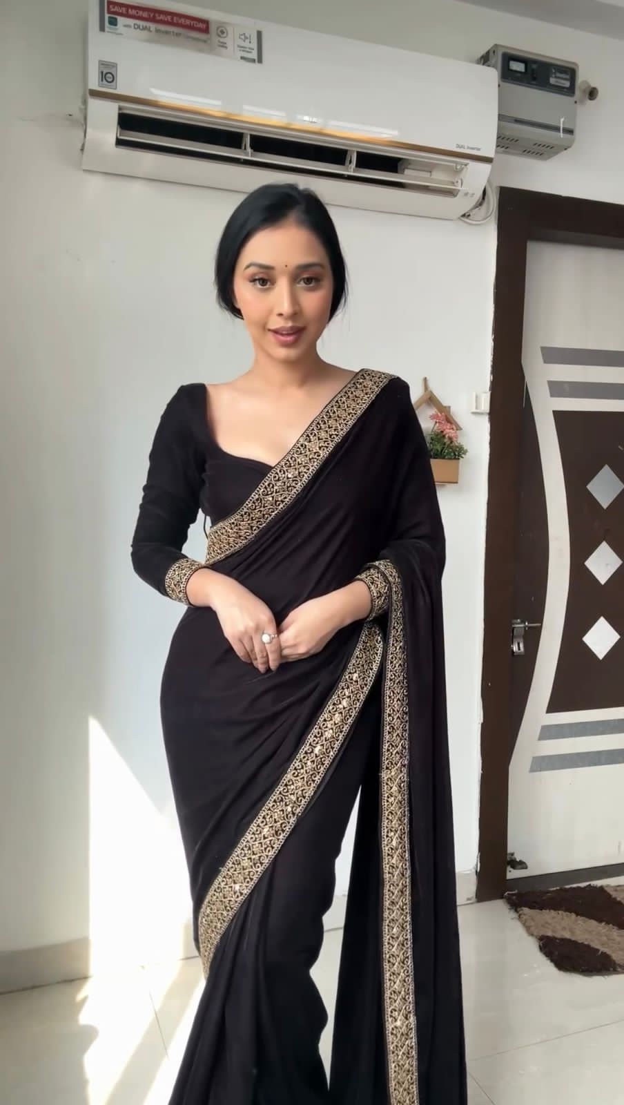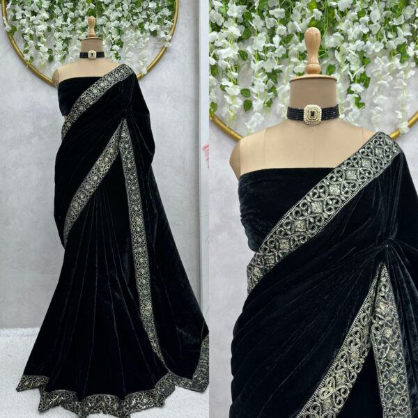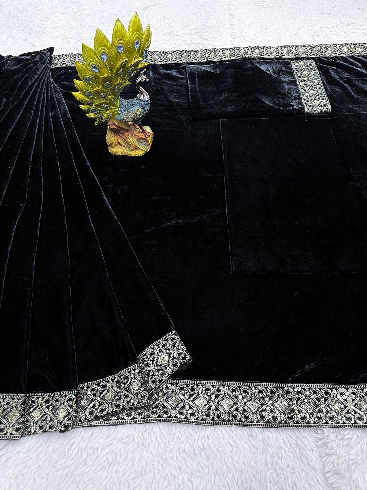 Beautiful Designer 1M Ready to Wear Saree on 9000 Velvet with Sequence work Blouse on also 9000 Velvet with Lace work.