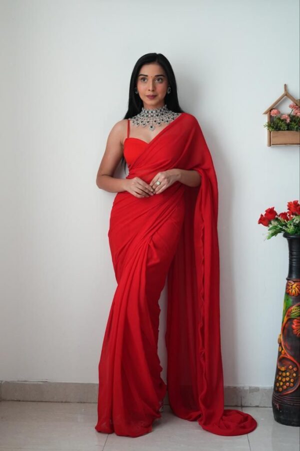 1️⃣FABRIC:- Heavy Faux Georgette silk 14 kg quality.