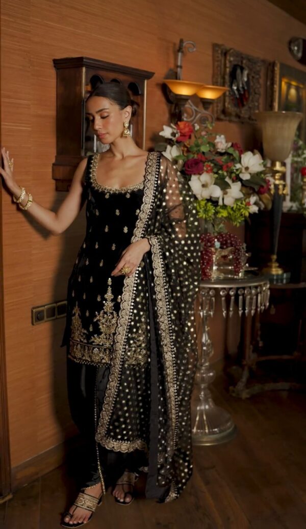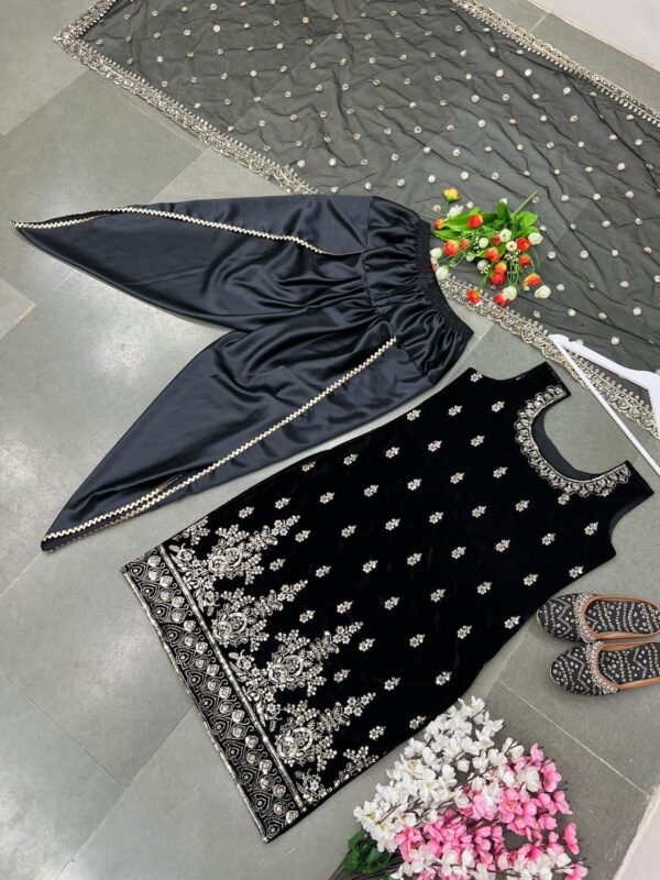 Top Fabric : Heavy Viscose Velvet With Heavy Embroidery 5mm Sequence Work With Extra Sleeve Fabric