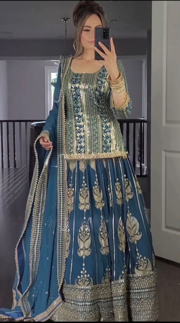* Lehenga* :- Length-42″ Inches bottom-up to 3 Mtr.