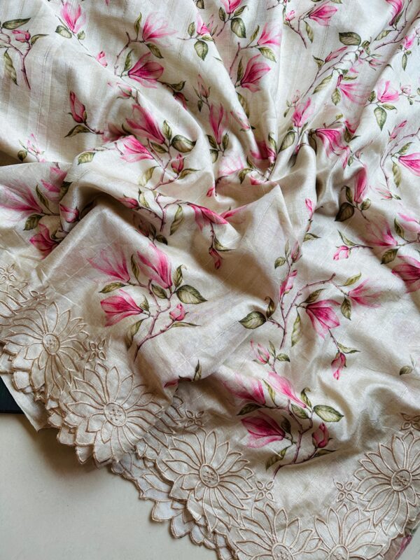 Exclusive pure tussar silk with cutwork border and floral pattern beat this with summer