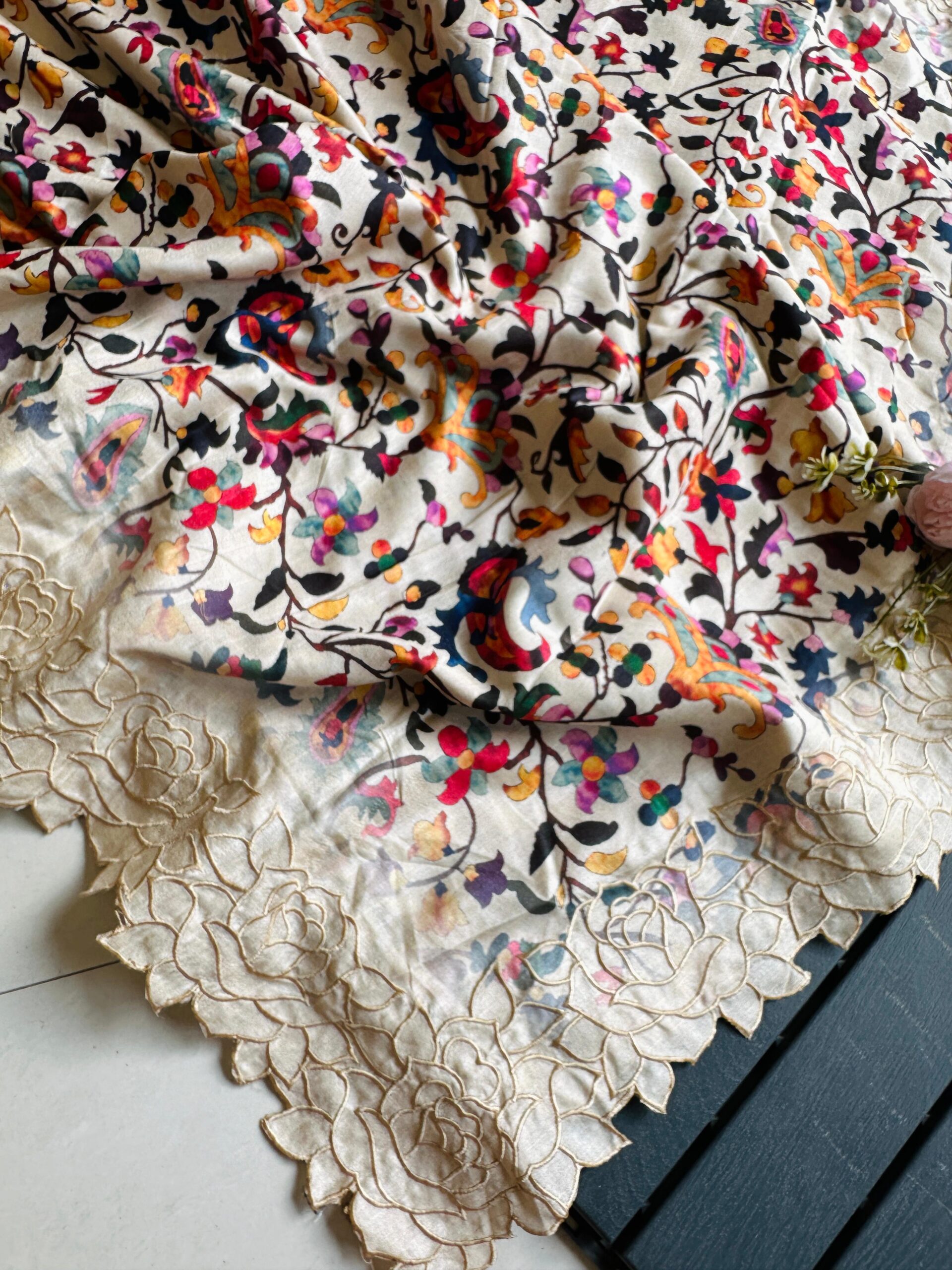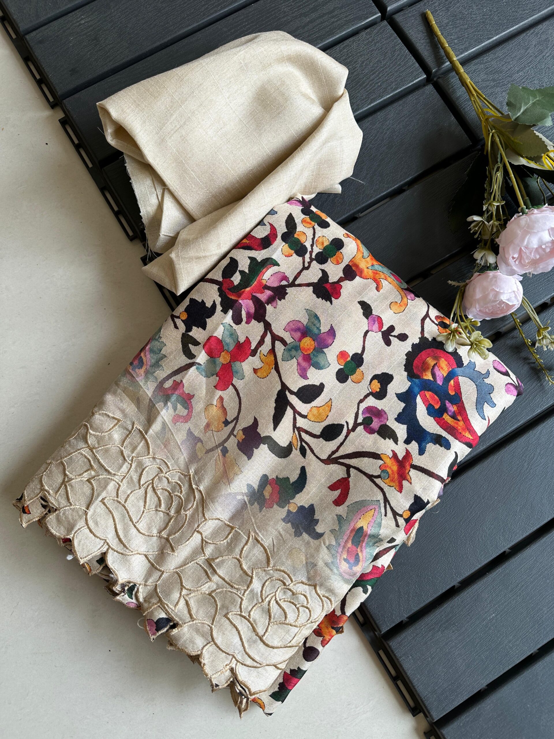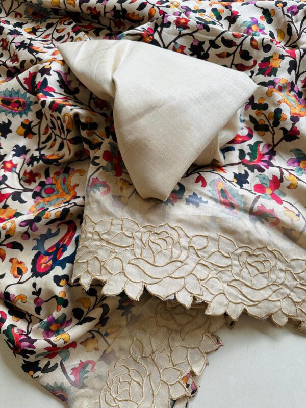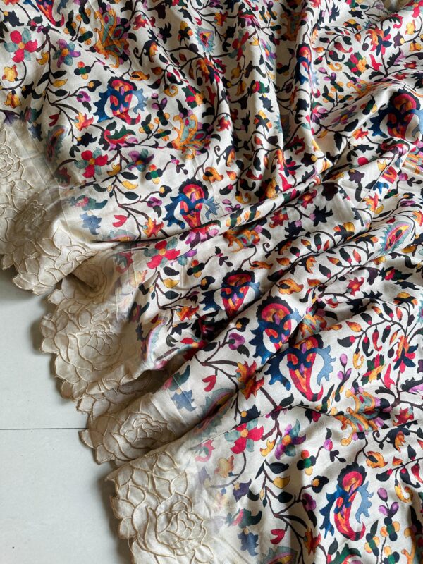 Exclusive pure tussar silk with cutwork border and floral pattern beat this with summer
