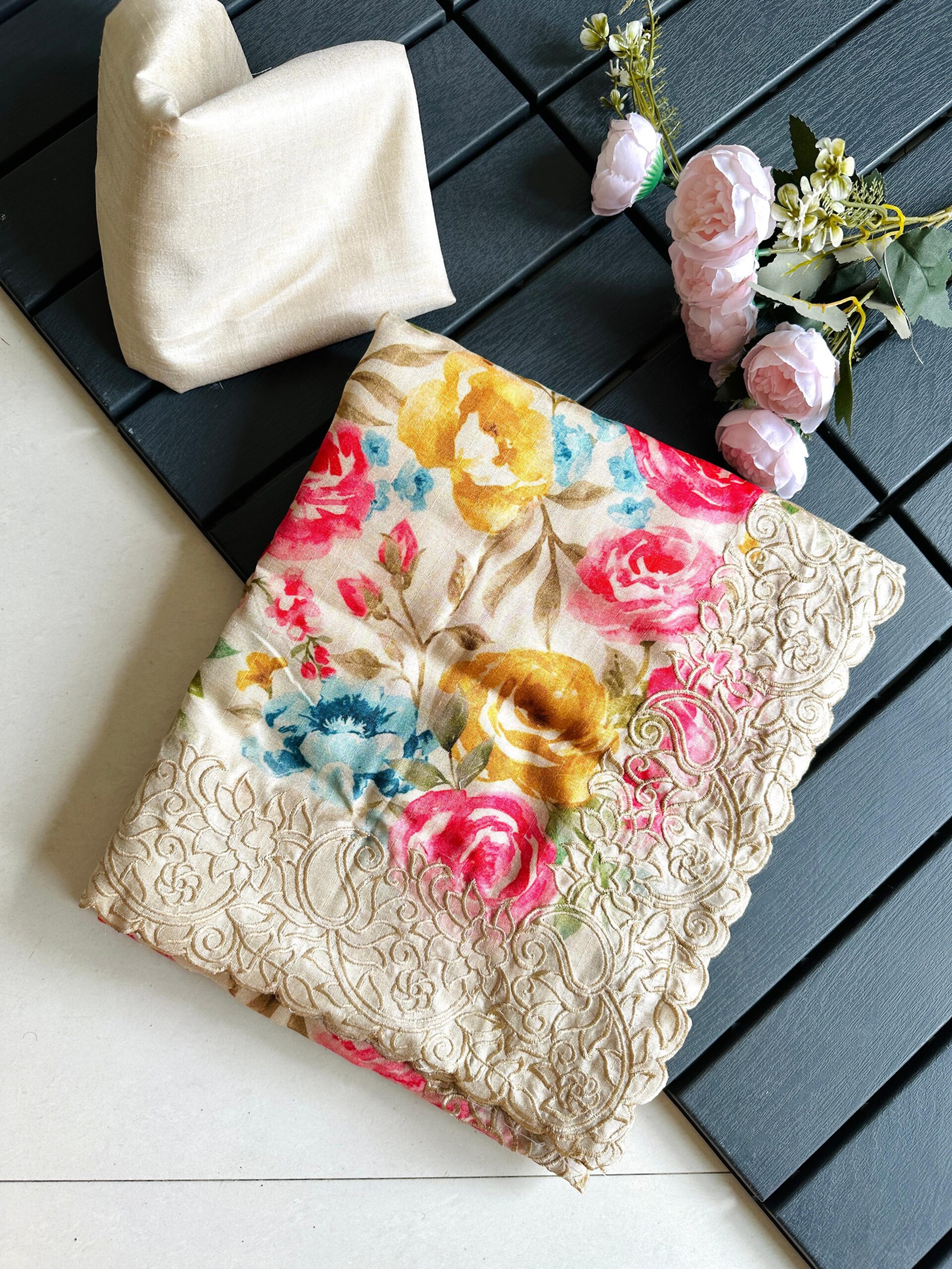 Exclusive pure tussar silk with cutwork border and floral pattern beat this with summer