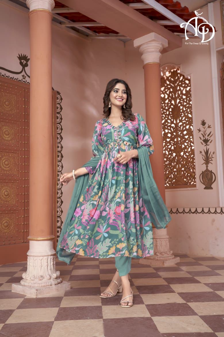 It is paired with Round Gown matching pants and chiffon dye dupatta For all the stylish ladies out there, who want something simple, sophisticated and traditional.