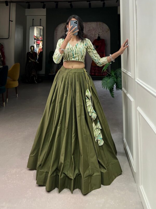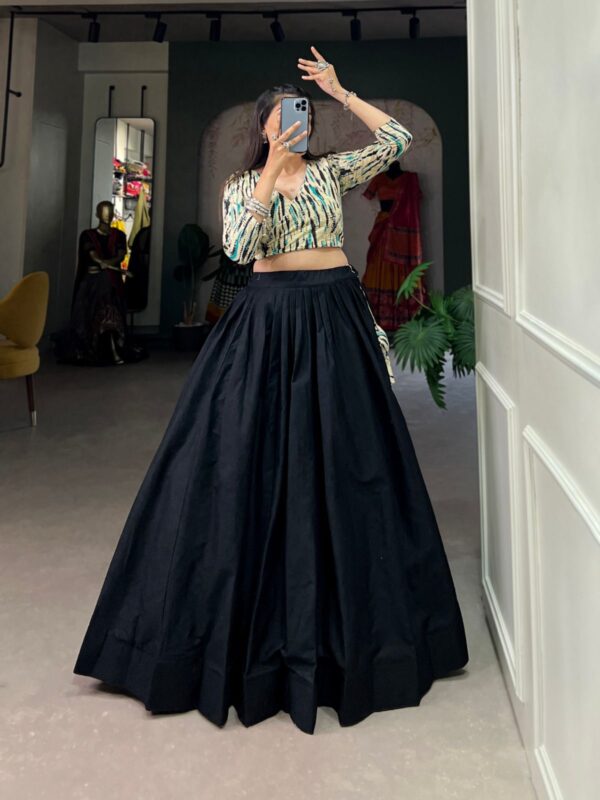 Gorgeous Cotton Plain Lehenga Paired with Printed Blouse