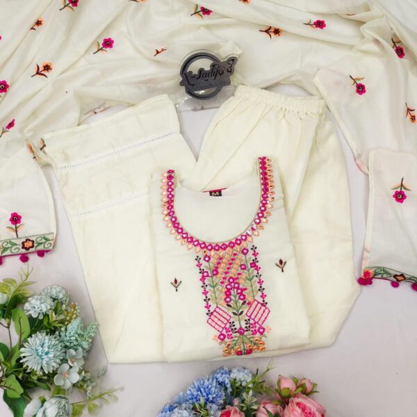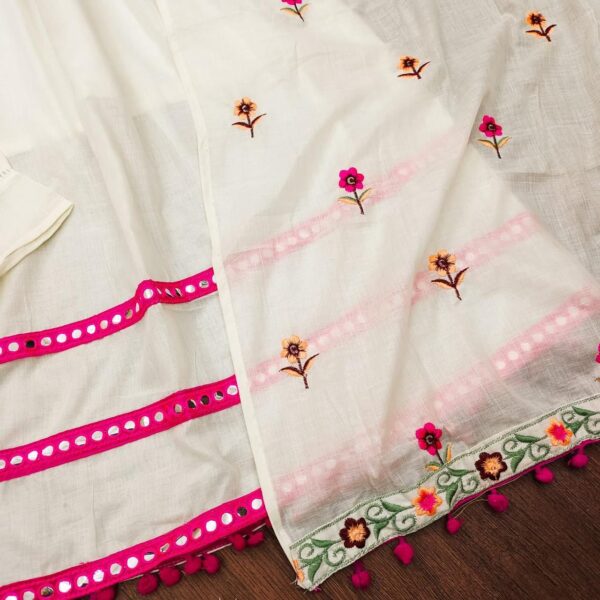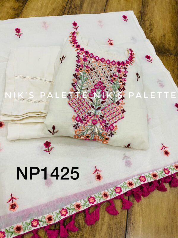Paired with heavy embroidery mulmul Dupatta with Tussels lace