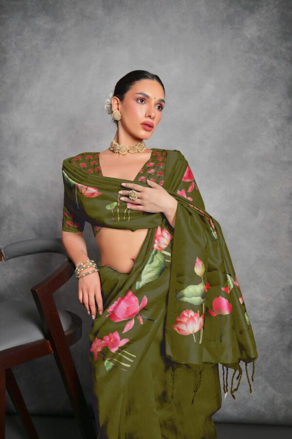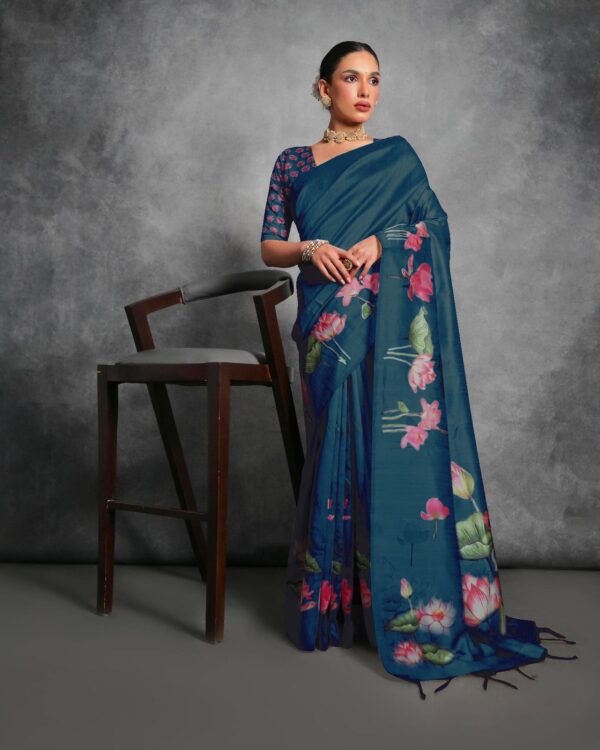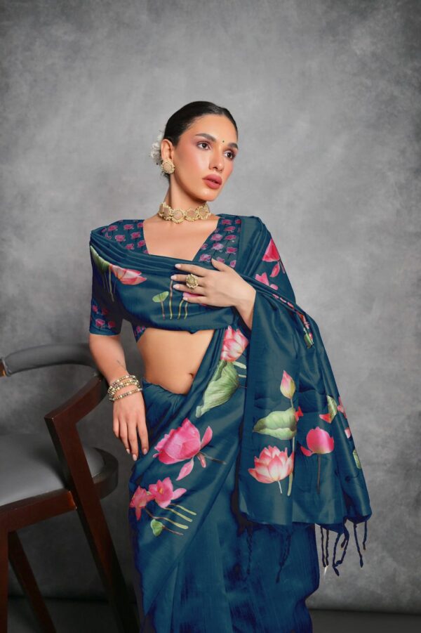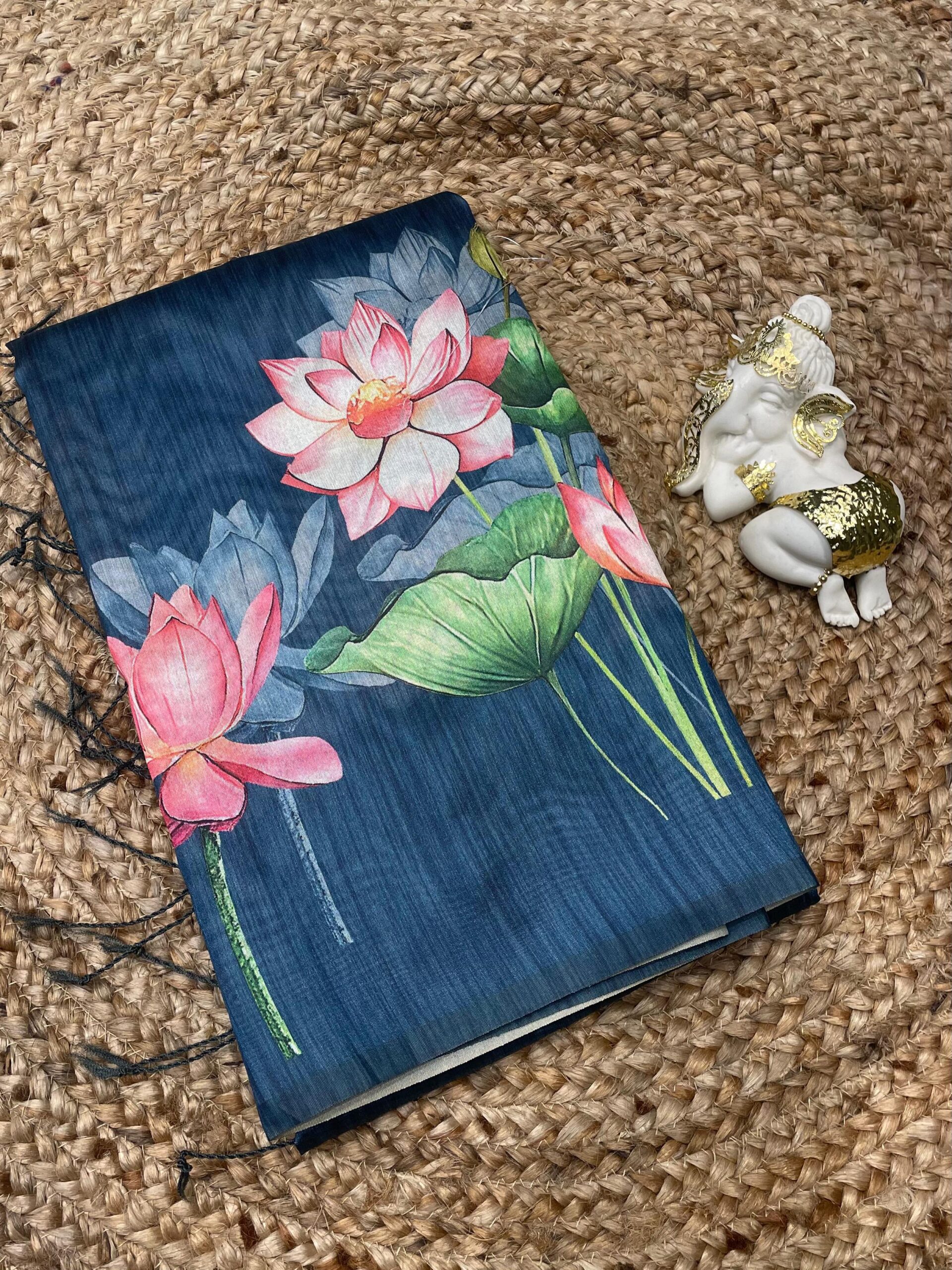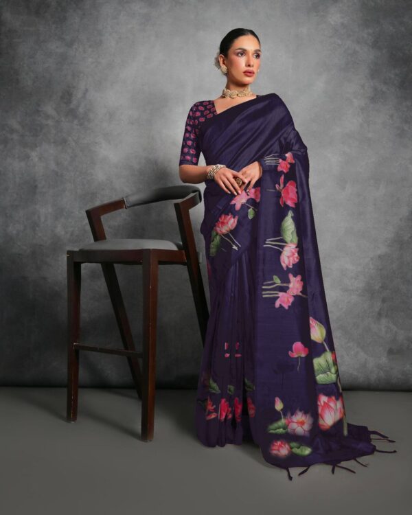➡️Fabric – Handlooms Tussar With Beautiful design and digital print with Attached Rich Pallu and tussles