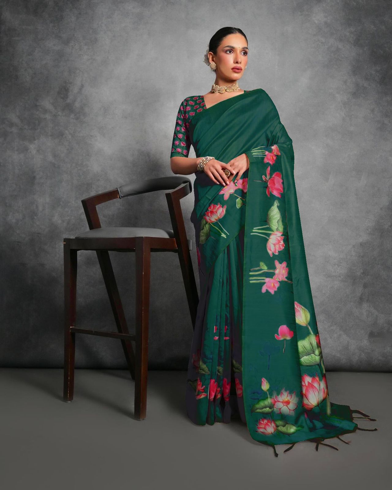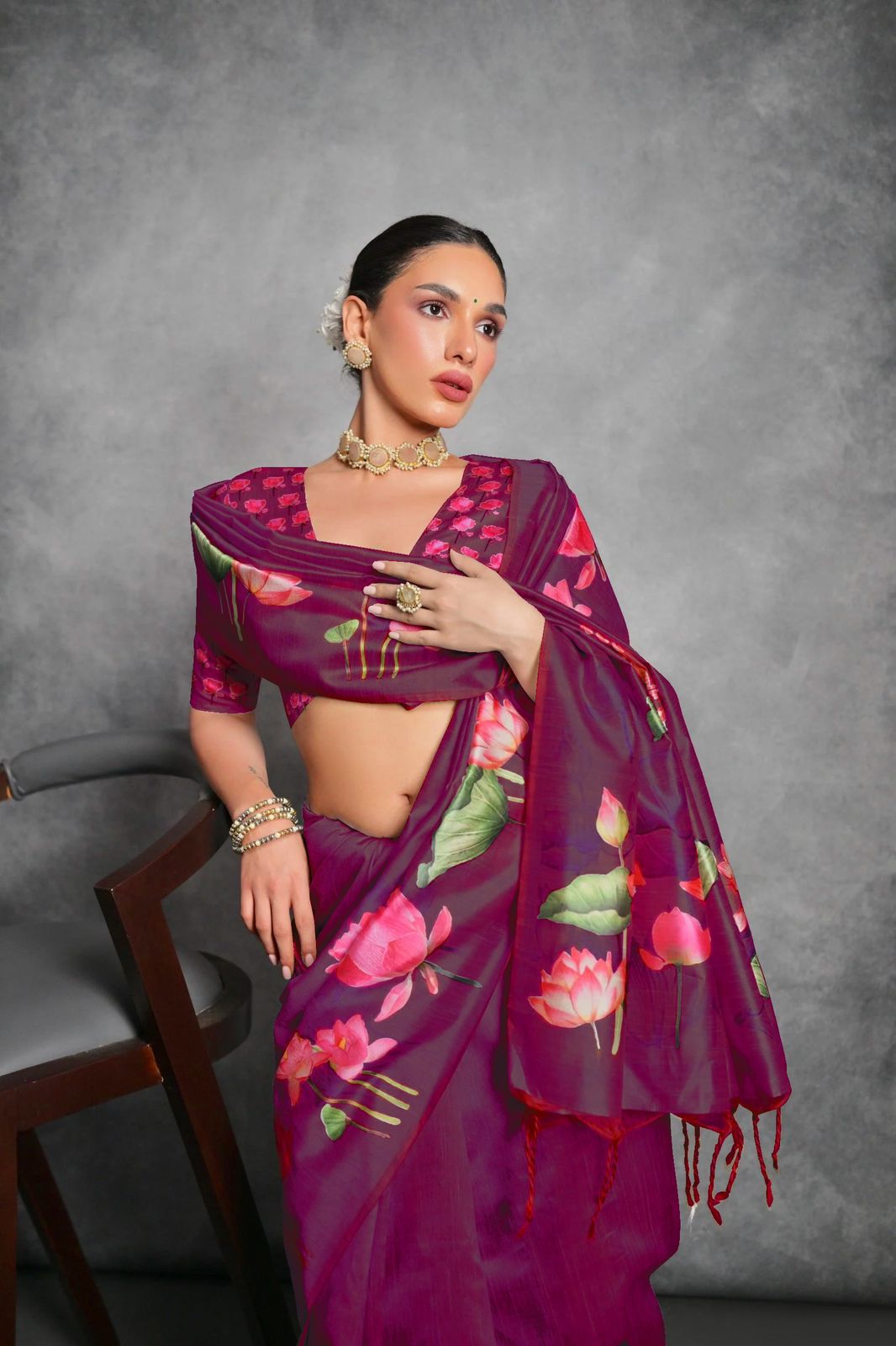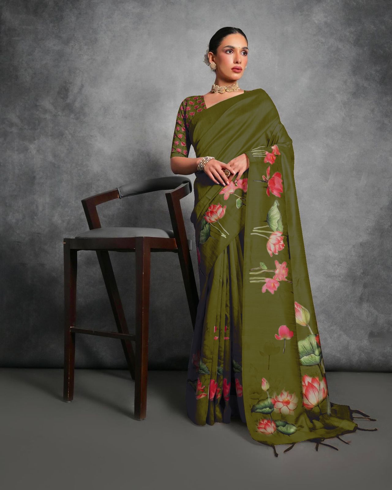 ➡️Fabric – Handlooms Tussar With Beautiful design and digital print with Attached Rich Pallu and tussles
