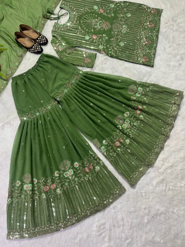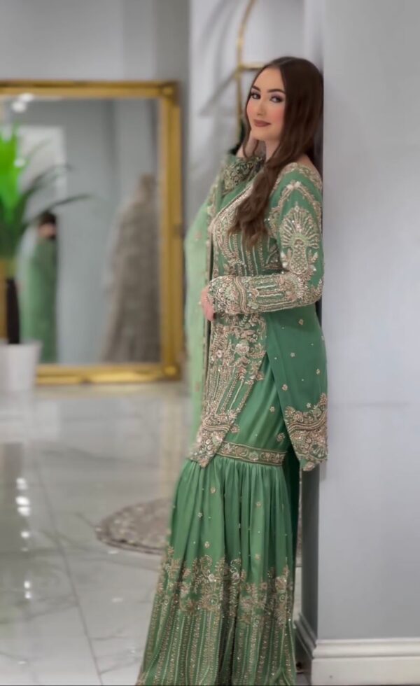 Top Fabric :- Heavy Faux Georgette With Heavy 5mm Sequence Embroidery Multi Needle Work With Full Sleeve With Latkan Dori