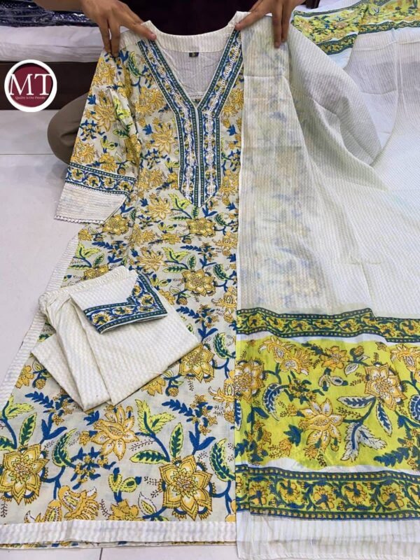 Look stylish and graceful with this beautiful cotton suit set. Perfect for everyday wear or a special occasion, you’ll be a savior to your fashion sense. Marvel at the floral sight and be the envy of all onlookers.
