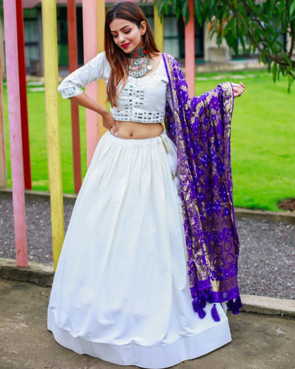 Stunning creations with a touch of glamour and sophistication are often hand Mirror work blouse with elegant lehenga are one of the popular choices for women for their navratri 🤍