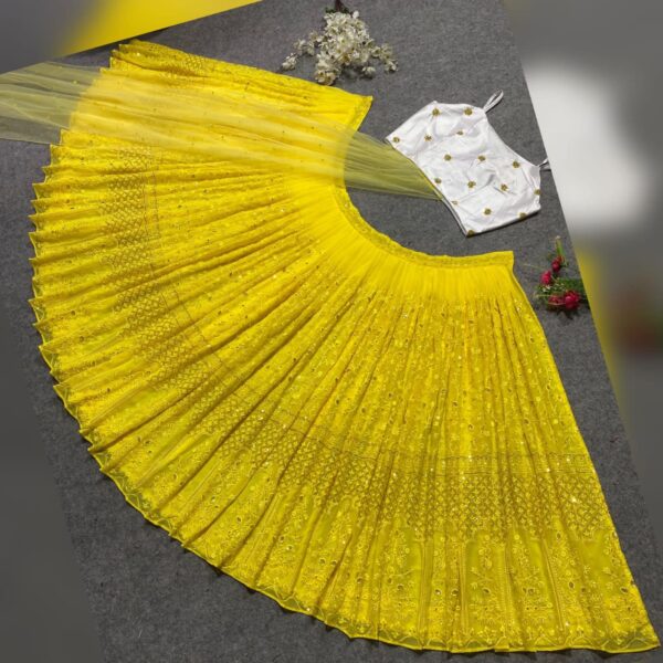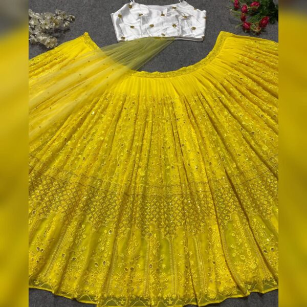 Lemon Yellow Colour Embroidered Attractive Party Wear Silk Lehenga choli has a Regular-fit and is Made From High-Grade Fabrics And Yarn.
