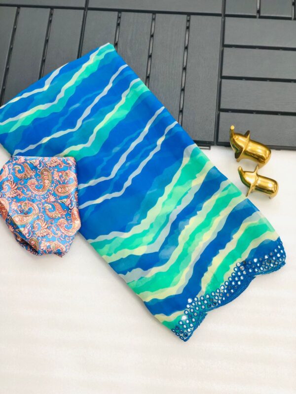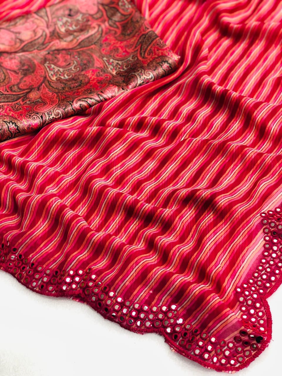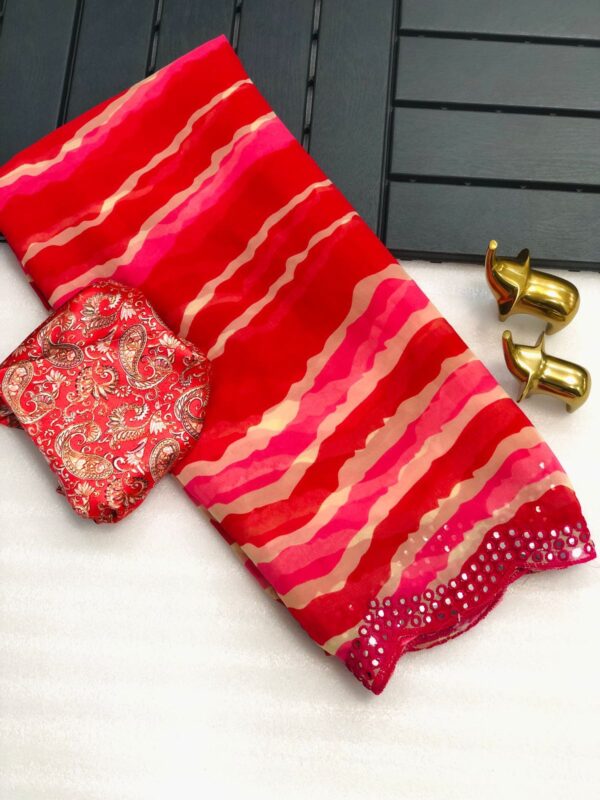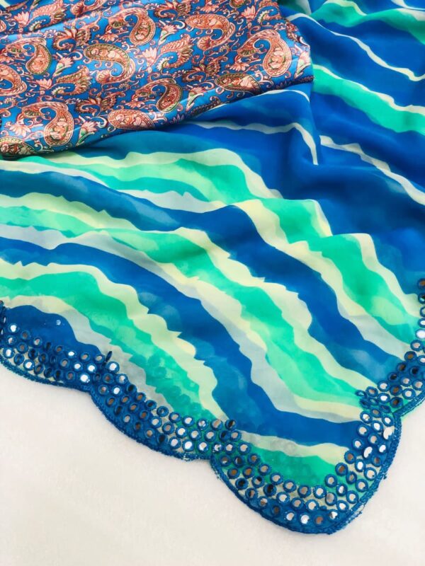 Pure and very soft Lite weight Georgette sarees with all over LEHERIYA print and allover foil mirrors penal work.