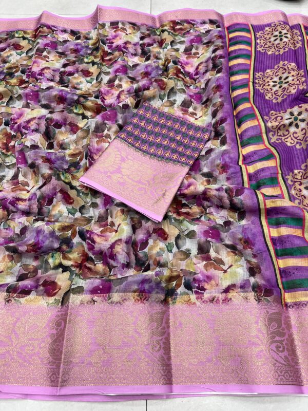 Linen Digital Print with Golden Jacquard Border Saree