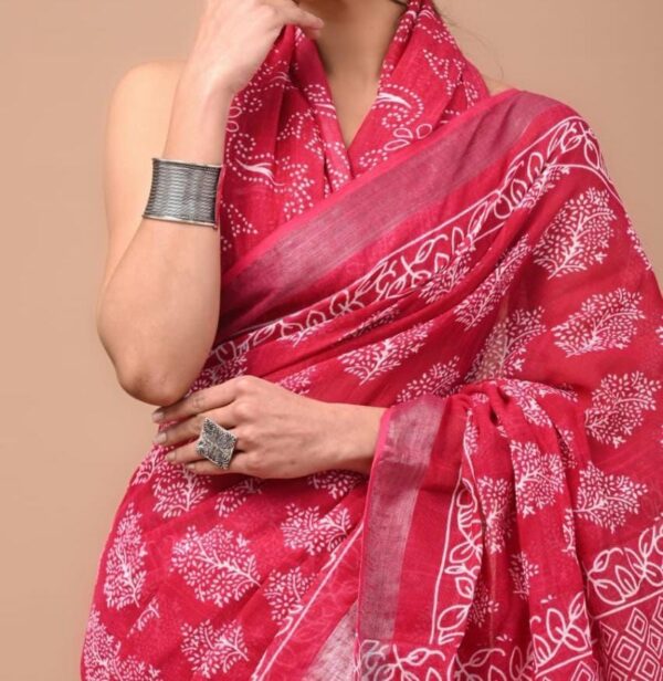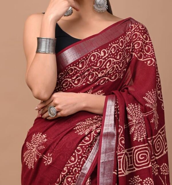 Be the first to review “Linen saree with beautiful Digital Printed pallu Silver jari Weaving border” Cancel reply