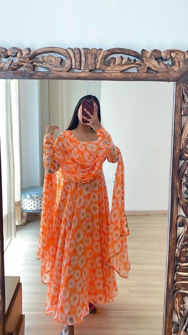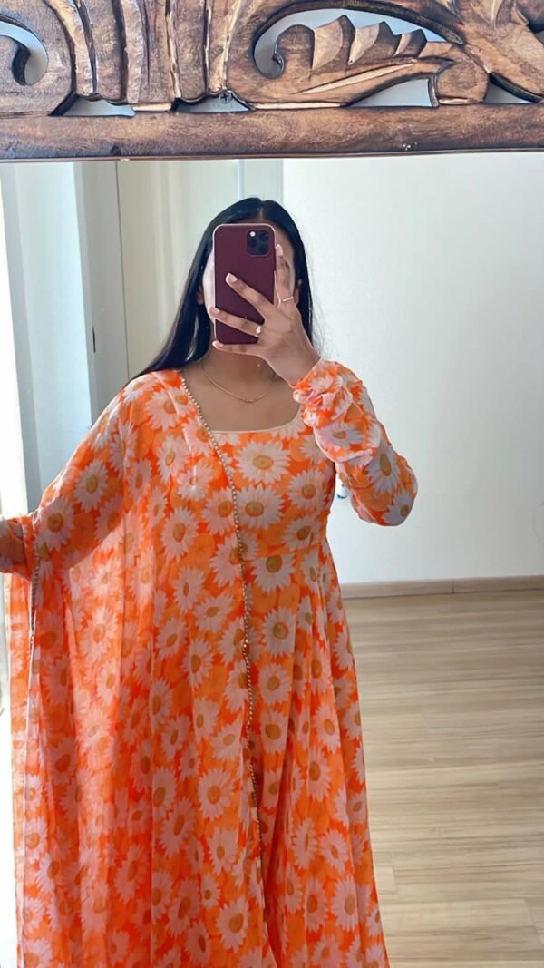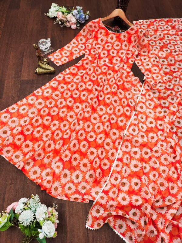 Fabric:- Butta Faux Georgette with ππ€·πΌββοΈ digital print gown With print frill with print Dupatta β¨
