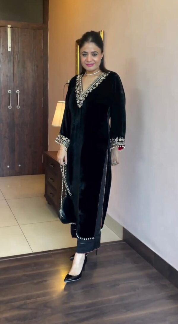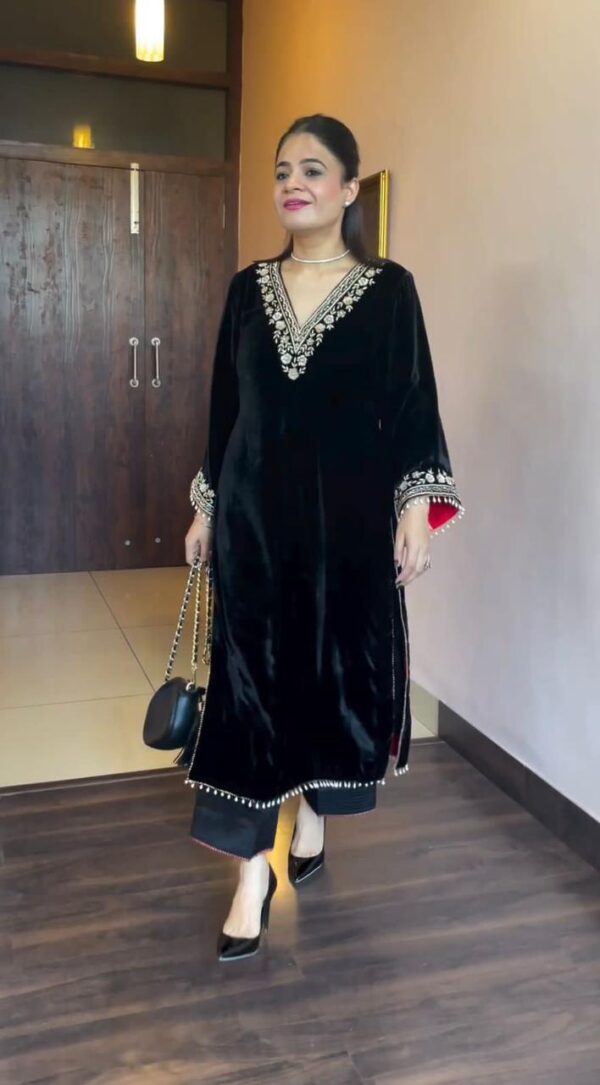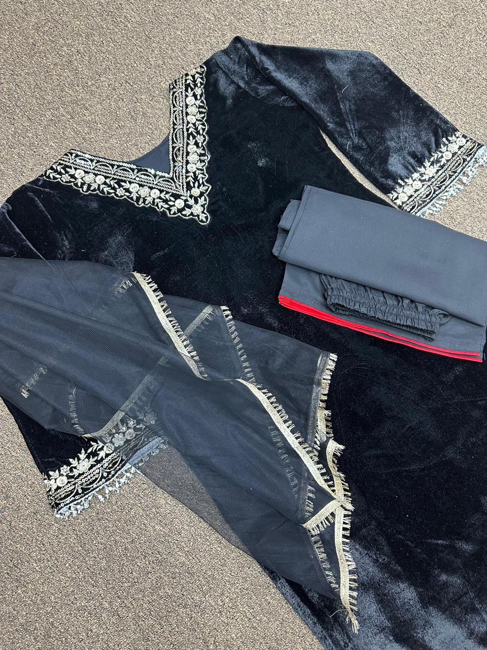 ♥️ Presenting New Velvet Designer Collection With Fancy Embroidery Sequence Work Top – Bottom With Dupatta 👌🏻