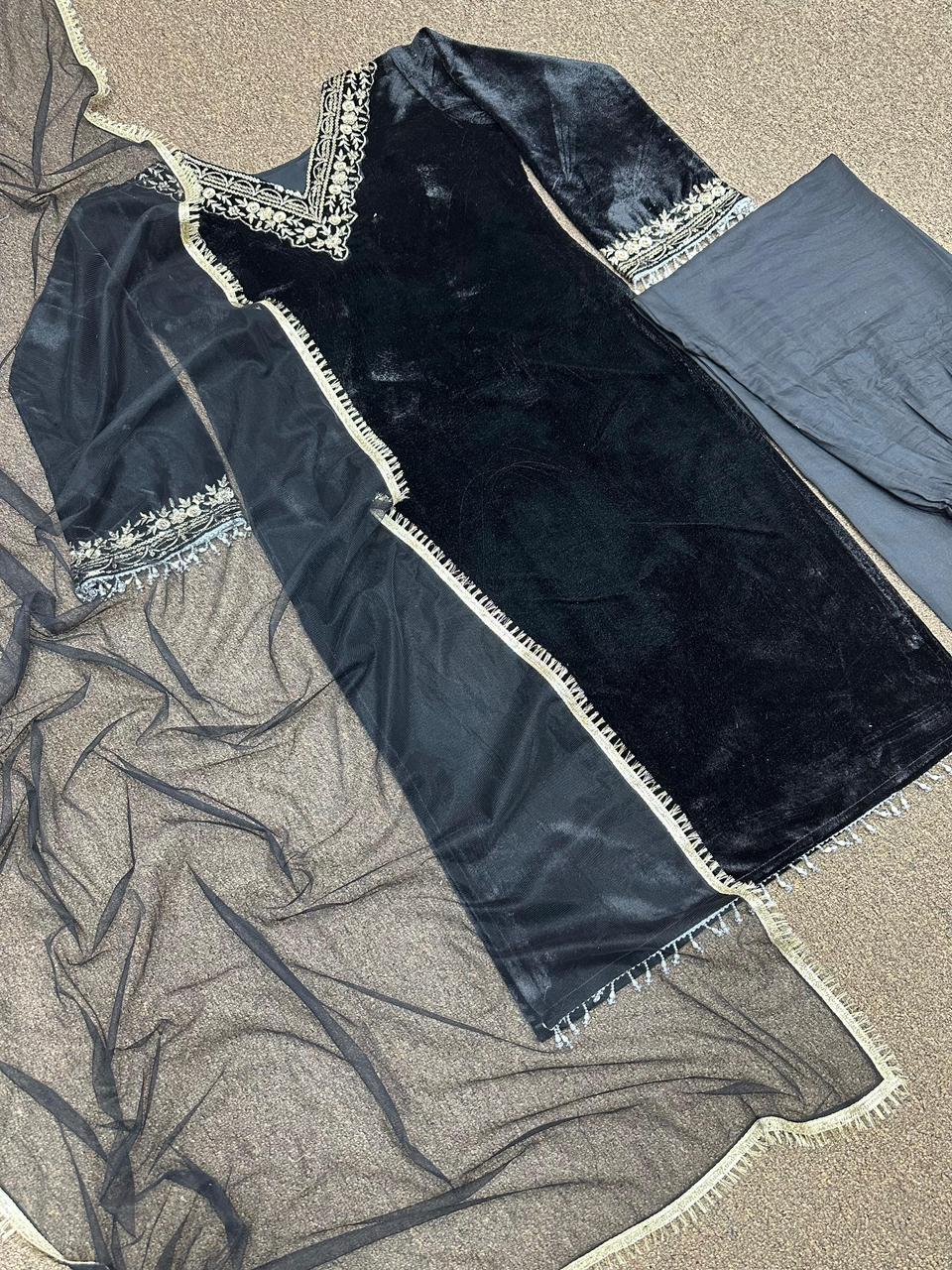 New Velvet Designer Collection With Fancy Embroidery Sequence Work Top – Bottom With Dupatta