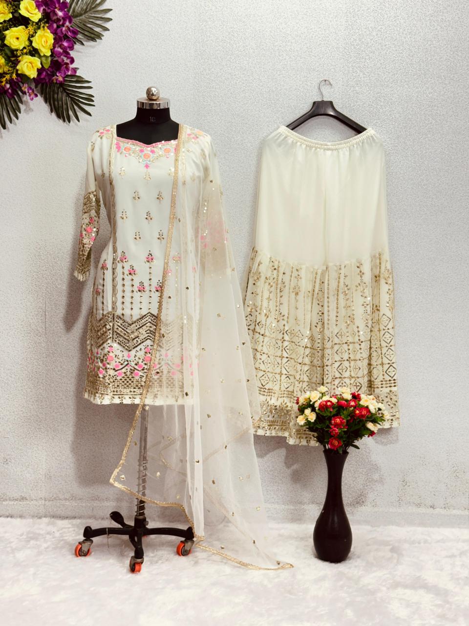 NEW DESIGNER HEAVY FUAX GEORGETTE SEQUENCE WORK PAKISTANI SUIT