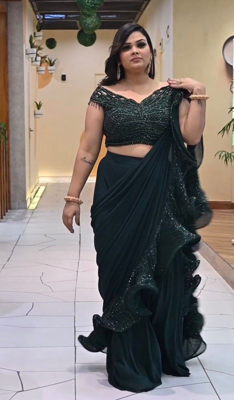 NEW BOLLYWOOD STYLE FANCY LEHANGHA CUM SAREE SEQUENCE EMBROIDERED WORK WITH CHOLI