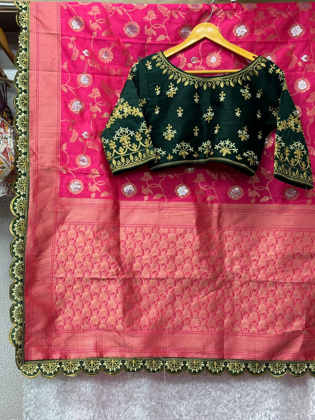 BLOUSE :-RICH EMBROIDERY 🧵 WORK FULLY STICH 38 TO UP TO 42 WEAE MARGINE AVAILABLE.