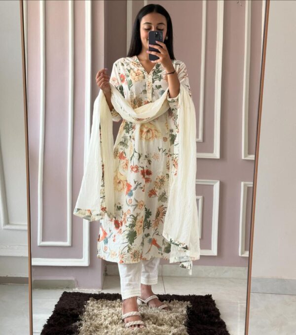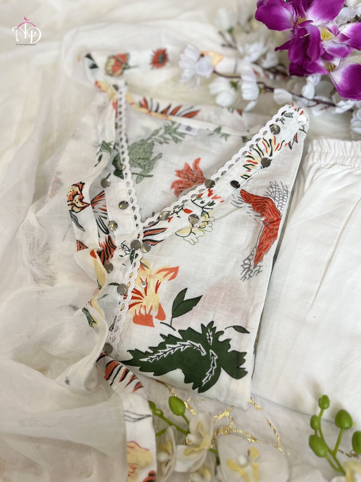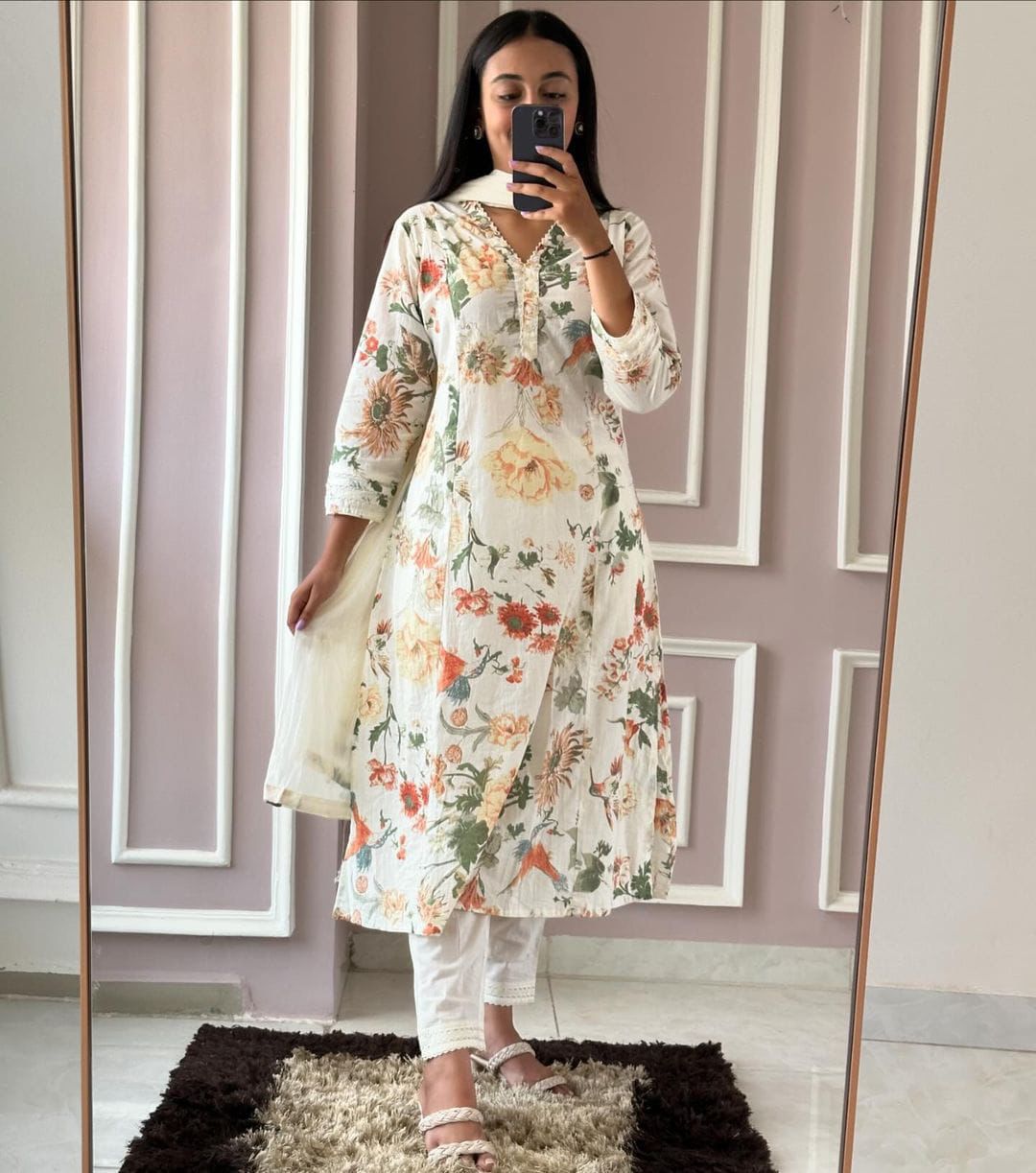Beautiful Pure Cotton A-line Kurta set with Block print Stylish Front Cotton Pent With Pure Mul Cotton DUPPTA