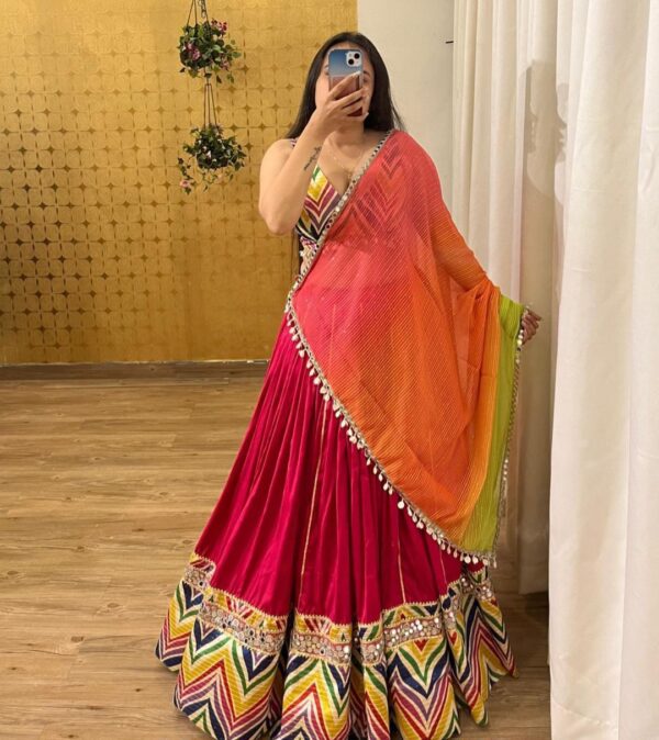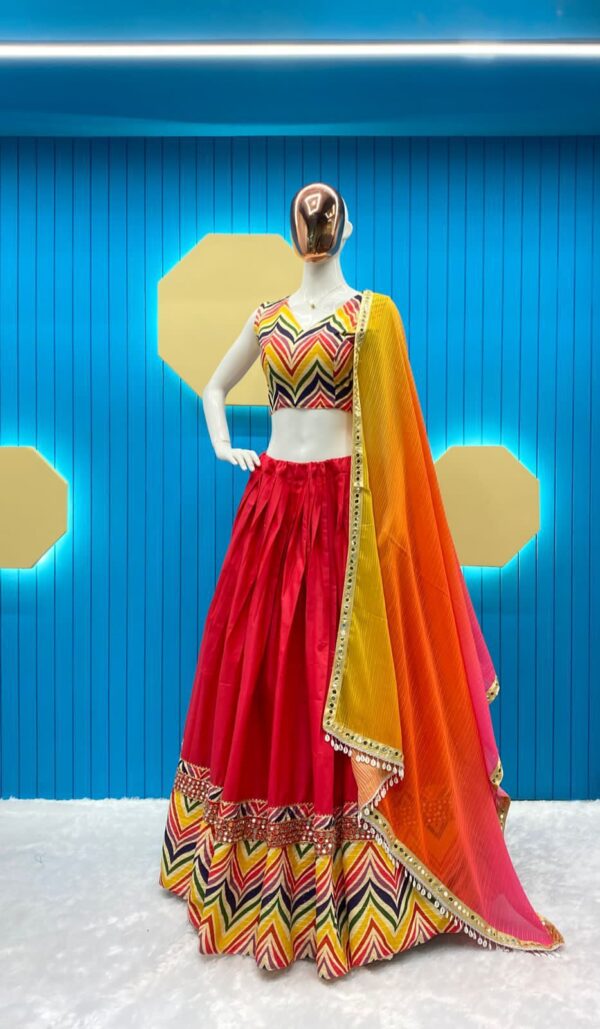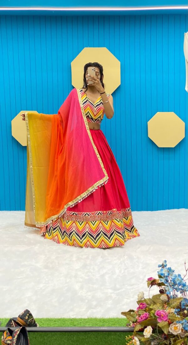 BOUTIQUE STYLES PURE COTTON DESIGNER PRINTED WITH REAL MIRROR WORK LEHENGA CHOLI AND DUPATTA.