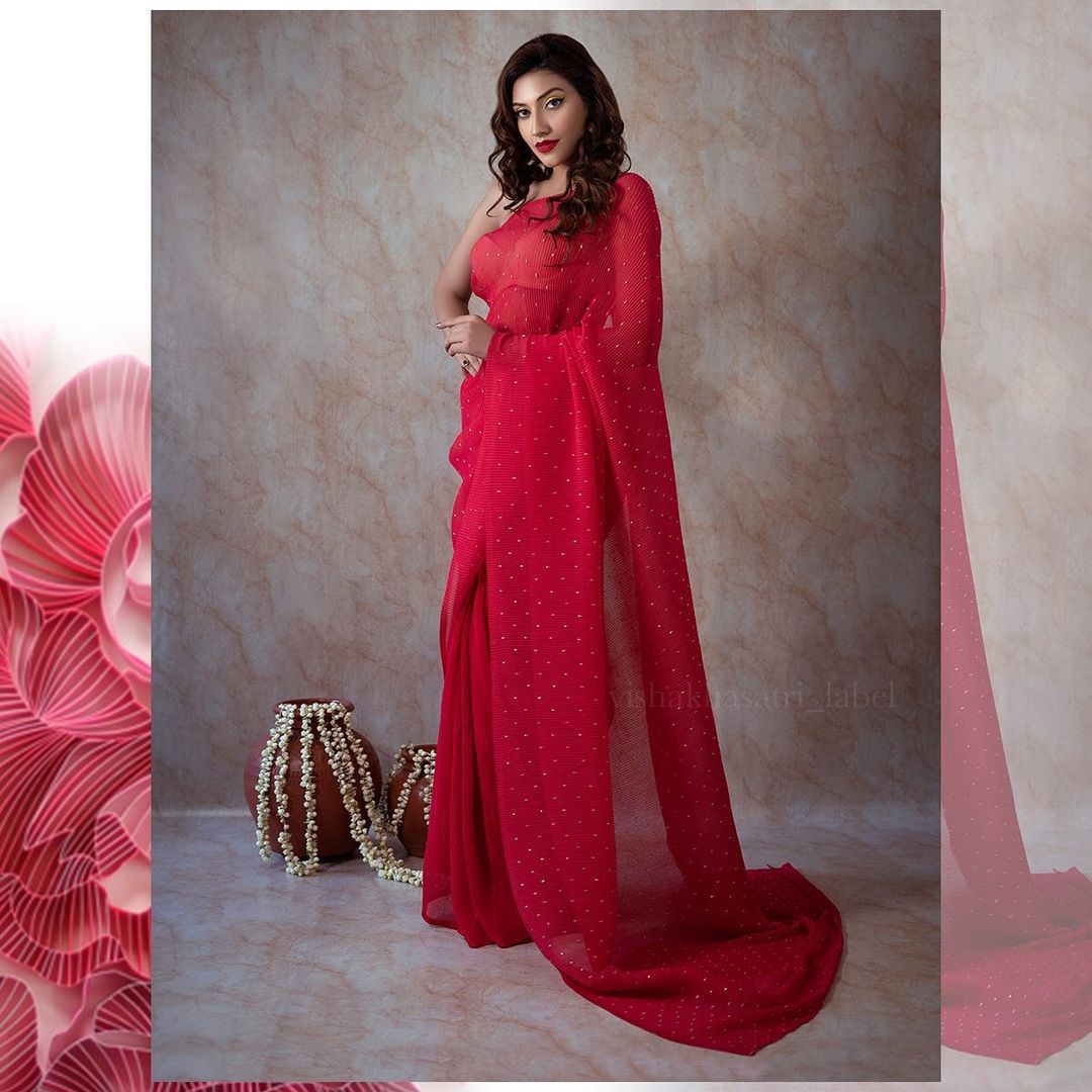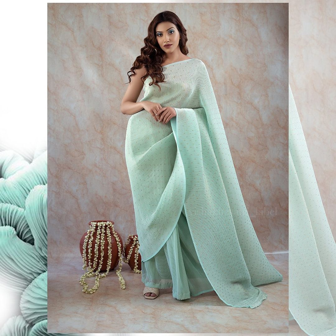 Exclusive launch – We get you what you look for pure georgette saree with complete heavy crush work all over and complete designer khatli work. Pair with plain georgette blouse