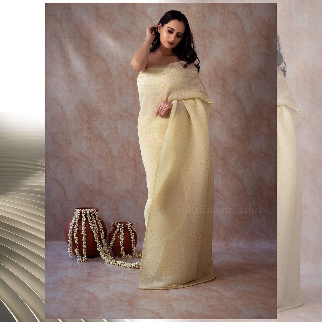 Heavy cut-dana work in this all saree which make saree beautiful and saree make you beautiful when you were it.