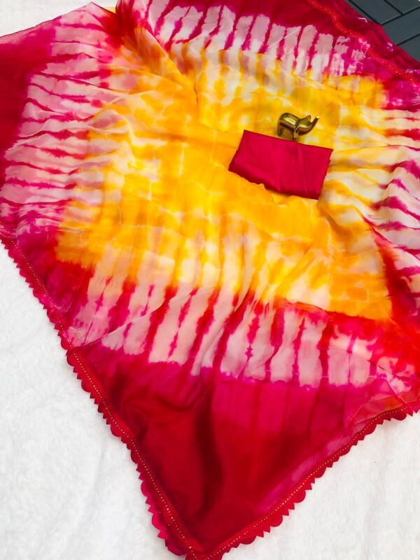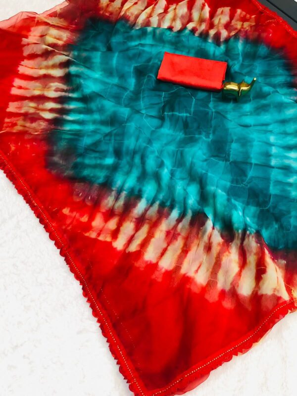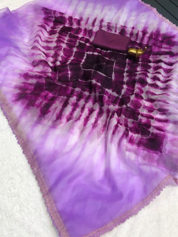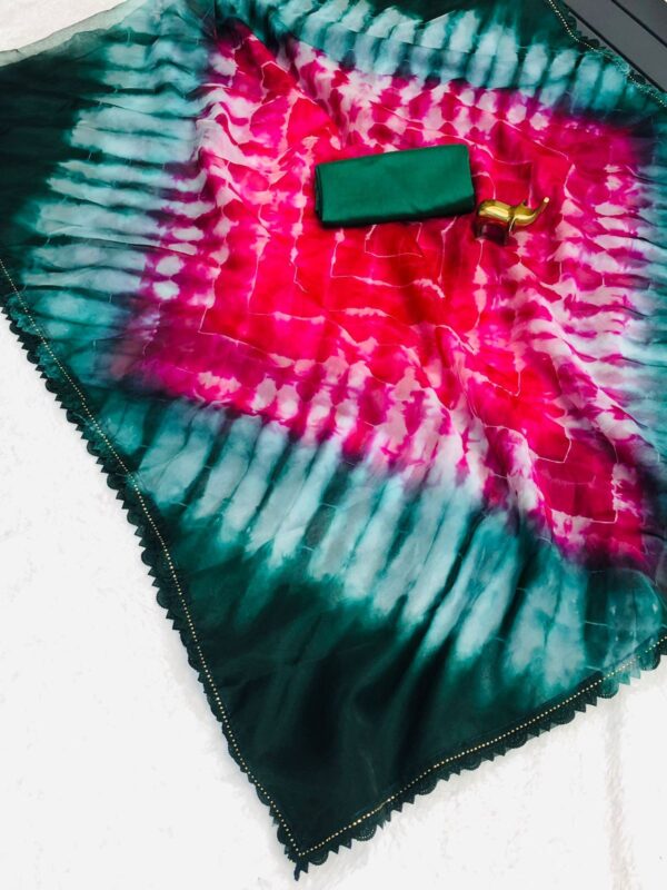 Quality- pure Soft organza saree with beautiful Tie and dye Block prints beautiful tie dye border and diamond work