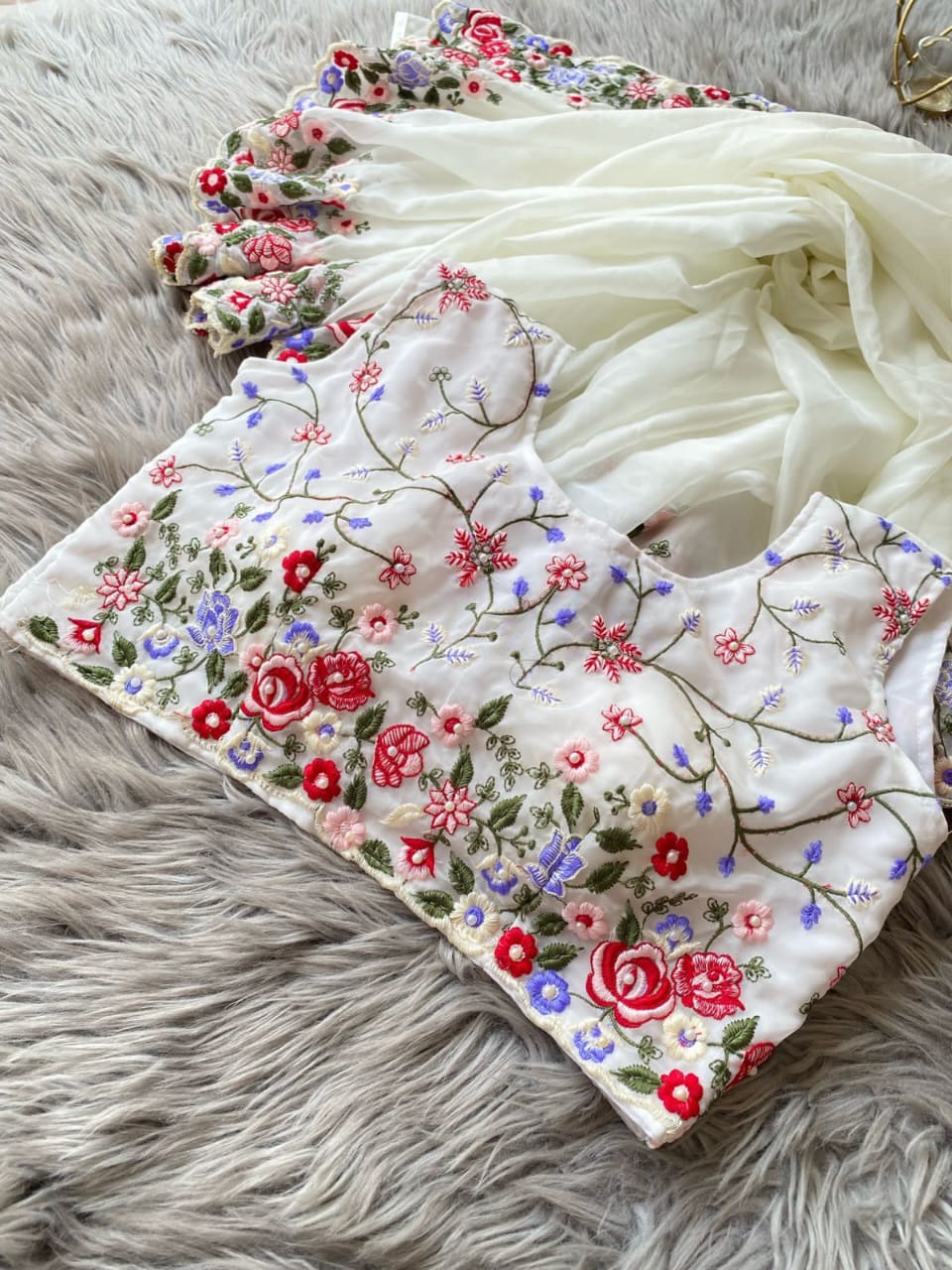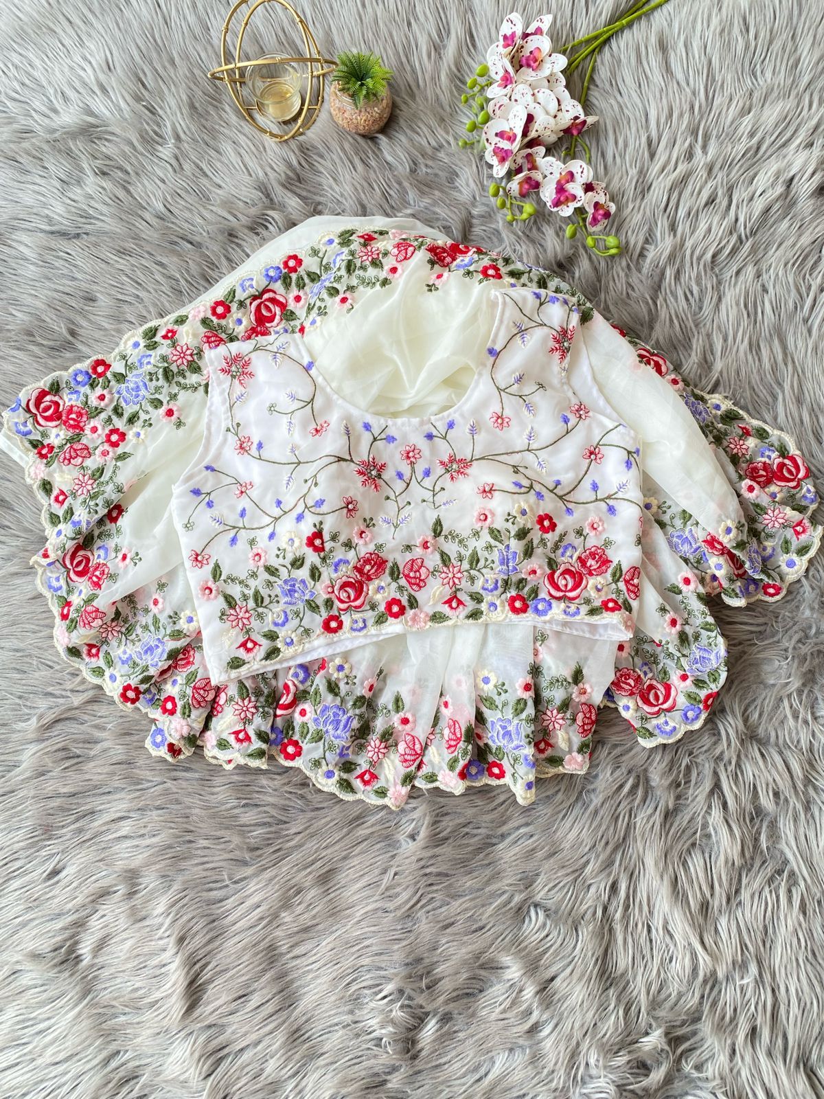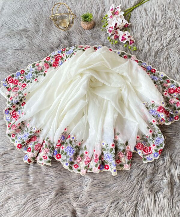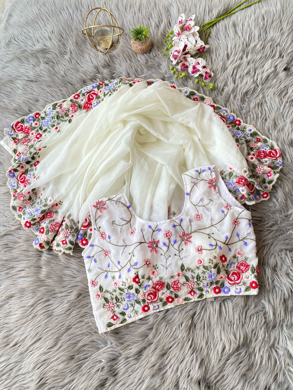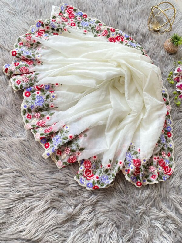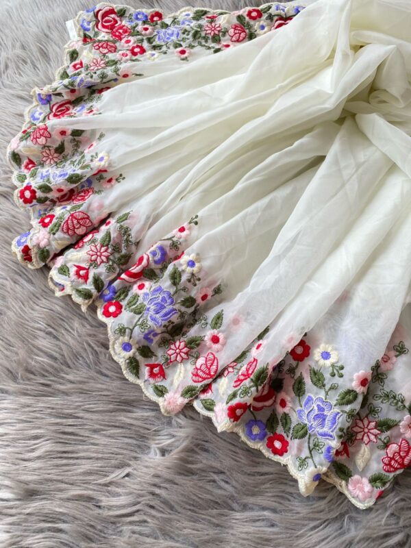 Pure Soft Orgenza With Multy Color’s Thread Work And Cutwork Border
