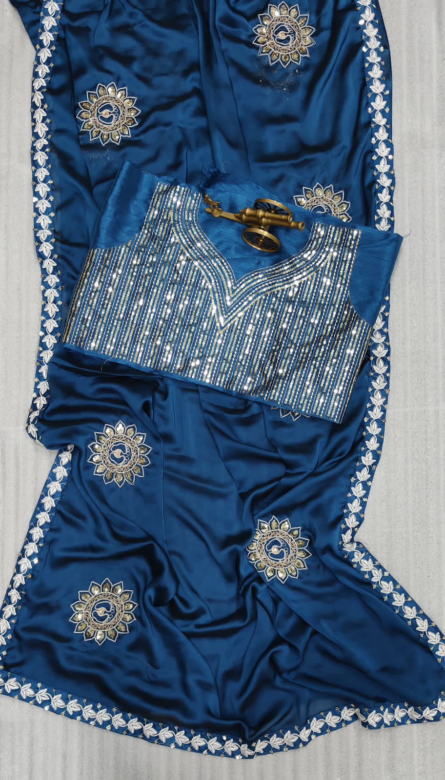 *Blouse :- Mono Banglori Silk With Embroidery Work Unstitched Blouse